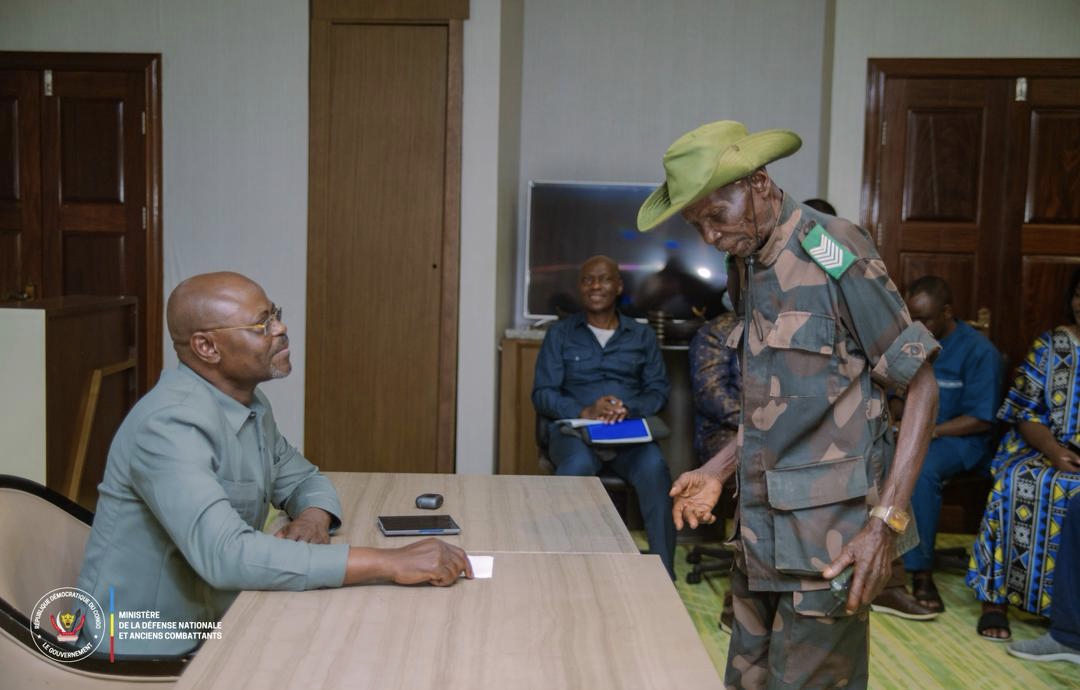 Régulier à la garnison de Kisangani, ce sous-officier de 2ème classe a été reçu par VPM de la Défense Nationale, Me Guy Kabombo Muadiamvita pour un échange et encouragement. Le numéro un de défense nationale, lui a promis une décoration dans les jours avenir, pour ses loyaux services à la nation.